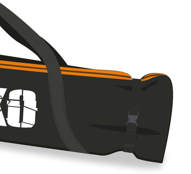 Una cinghia supplementare permette di avvolgere la sacca adattandola ad ogni formato di sci.